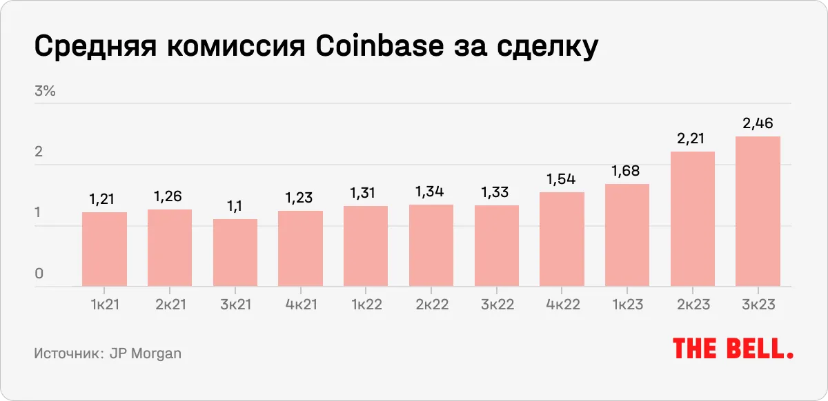 Вероятно, новые частные и институциональные инвесторы будут заходить на крипторынок через ETF, а не через Coinbase, несмотря на то что она предлагает инвестиции и в другие криптовалюты и сервисы (например, тот же стейкинг). В JP Morgan ожидают, что в ответ на появление спотовых ETF криптобирже придется снизить размер комиссий и уменьшить спред, размер которых в последние годы вырос в два раза, что негативно скажется на рентабельности.
