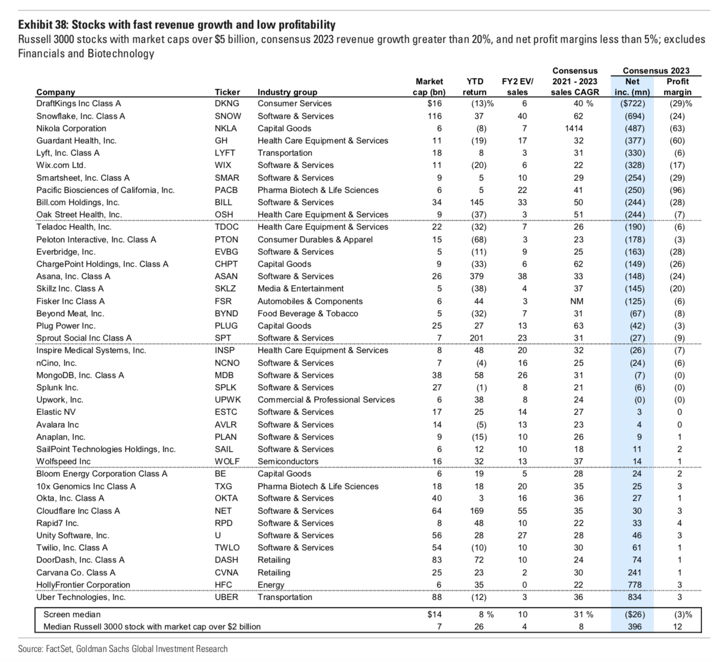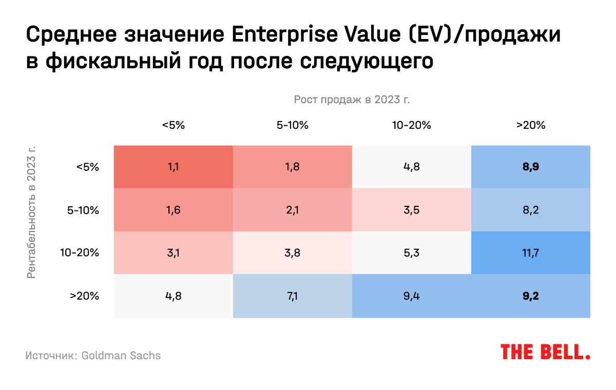 Одна из главных тем для инвесторов и директоров сейчас — это trade-off между прибылью и рентабельностью. В 2022 году в условиях роста ставок она станет еще более актуальной. Сейчас рынки примерно одинаково оценивают быстрорастущие компании с разной рентабельностью.