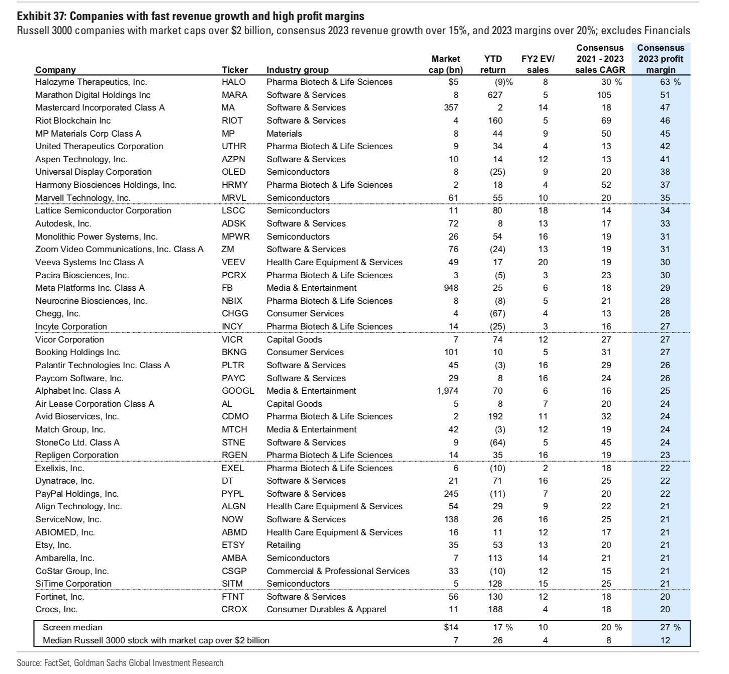Список компаний с быстрорастущей выручкой и высокой рентабельностью смотрите здесь, а здесь — с быстрорастущей выручкой и низкой рентабельностью.