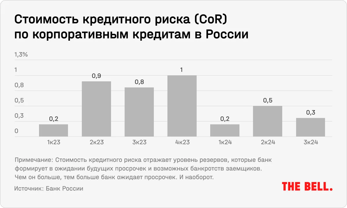 Формально у банков нет оснований для пессимизма — просроченная задолженность по корпоративным кредитам остается (.xlsx) на рекордно низком с середины 2021 года уровне — 2,7 трлн рублей. Правда, при быстром росте кредитного портфеля проблемы по новым долгам становятся заметны не сразу, потому что их «вызревание» занимает некоторое время, объясняет собеседник The Bell из крупного брокера. «Но даже с поправкой на этот эффект быстрого роста ситуация в целом по экономике пока не предполагает каких-то алармистских прогнозов», — успокаивает он.