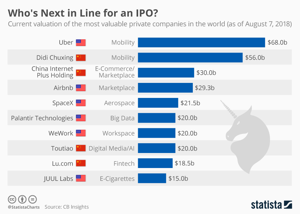 - Ситуация напоминает эйфорию: 83% компаний, разместивших акции на бирже с начала года, убыточны — это рекордное соотношение за всю историю наблюдений, но инвесторов это не смущает. И пока их аппетит к риску дает отличные результаты: в среднем капитализация компаний, которые провели IPO в этом году, выросла на 36% против 32% в 2017 году. Для сравнения: индекс S&P 500 за это время прибавил 9%.