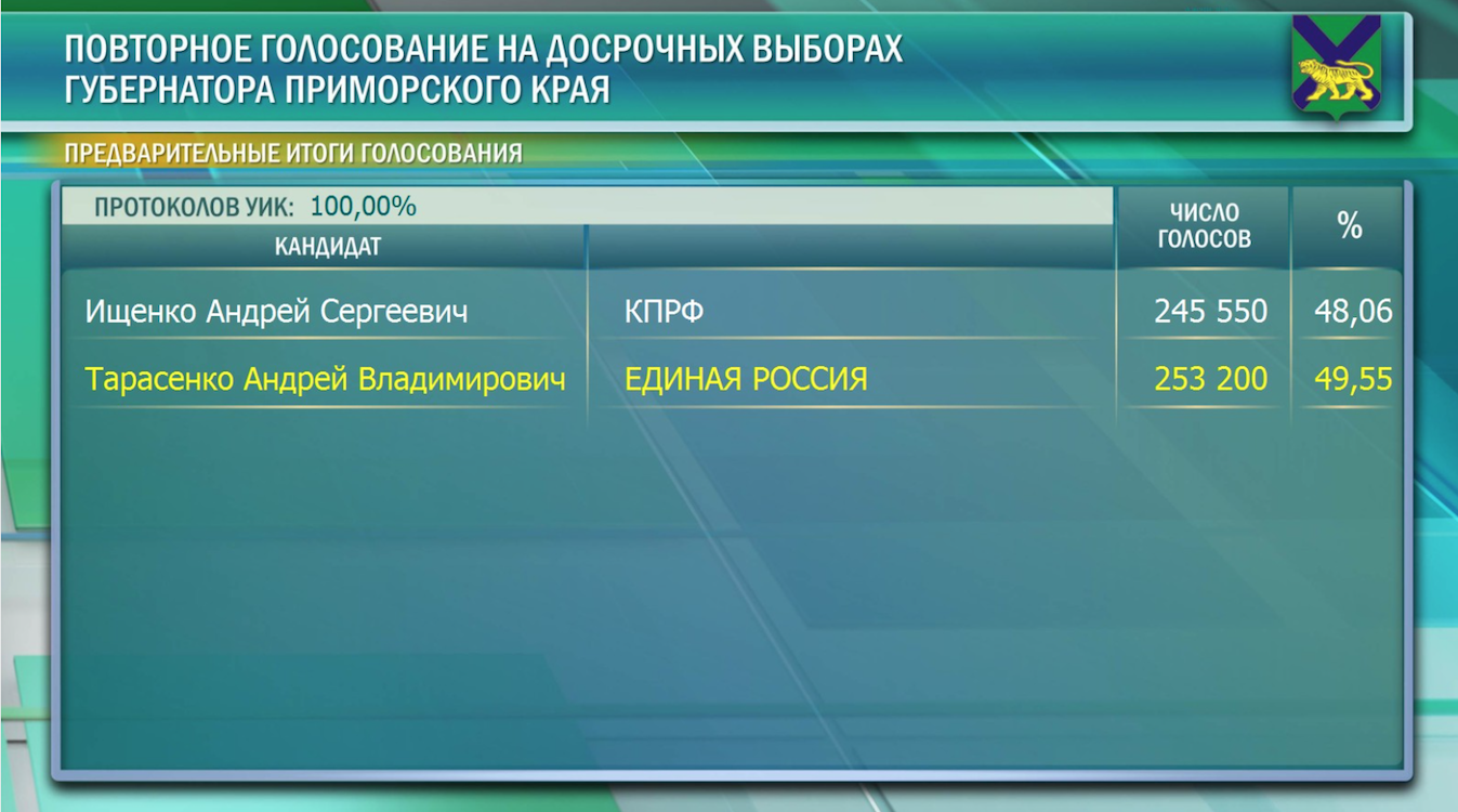 - Вчера в Приморье, где в прошлые выходные прошли скандальные выборы губернатора, прибыла комиссия ЦИК. Ей предстоит проверить результаты голосования на выборах губернатора края во втором туре, в котором, по предварительным данным, победу с минимальным перевесом одержал врио главы региона Андрей Тарасенко.