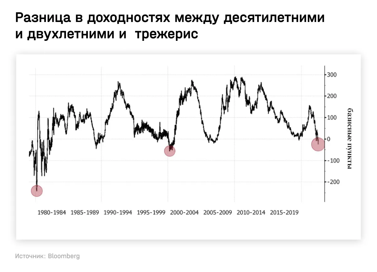 Акции почти не отреагировали на последние данные об инфляции в США, в отличие от облигаций (как это зачастую и бывает). Инверсия доходности между двухлетними и десятилетними трежерис достигла максимума с 2000 года, когда разница составляла 56 б. п., указывая на то, что рецессия практически неизбежна. Но пока ситуация еще далека от начала 1980-х, когда разница составляла 2,4 процентных пункта.