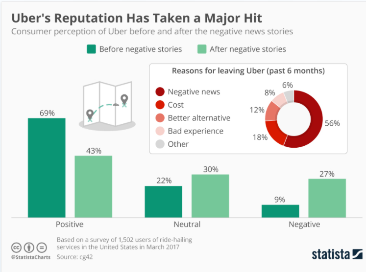 - Лично Каланик тоже регулярно напоминал о себе: после публикации скандального видео его спора с обычным водителем Uber о ценовой политике компании Каланик был вынужден публично попросить прощения, а потом встретиться с водителем для личных извинений. В итоге Каланик вновь начал спорить и предложил мужчине часть акций компании. Адвокаты Uber этого допустить не могли, и Каланик заплатил водителю $200 тысяч из своего собственного кармана.