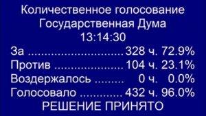 Государственная дума приняла в первом чтении законопроект о повышении пенсионного возраста. Этому предшествовала трехчасовая дискуссия с участием министра труда и социальной защиты Максима Топилин, спикера палаты Вячеслава Володина, депутатов и руководителей фракций. По итогам обсуждения законопроект поддержала только «Единая Россия», а остальные парламентские партии выступили против. В результате за документ проголосовали 328 депутатов (из 432 присутствующих), против высказались 104 члена палаты, воздержавшихся не было. Это примерно соответствует распределению мест в парламенте. По данным на 18 июня в Госдуме у ЕР – более 330 мест, у КПРФ и ЛДПР – примерно по 40 мест, у «Справедливой России» – чуть более 20 мест.