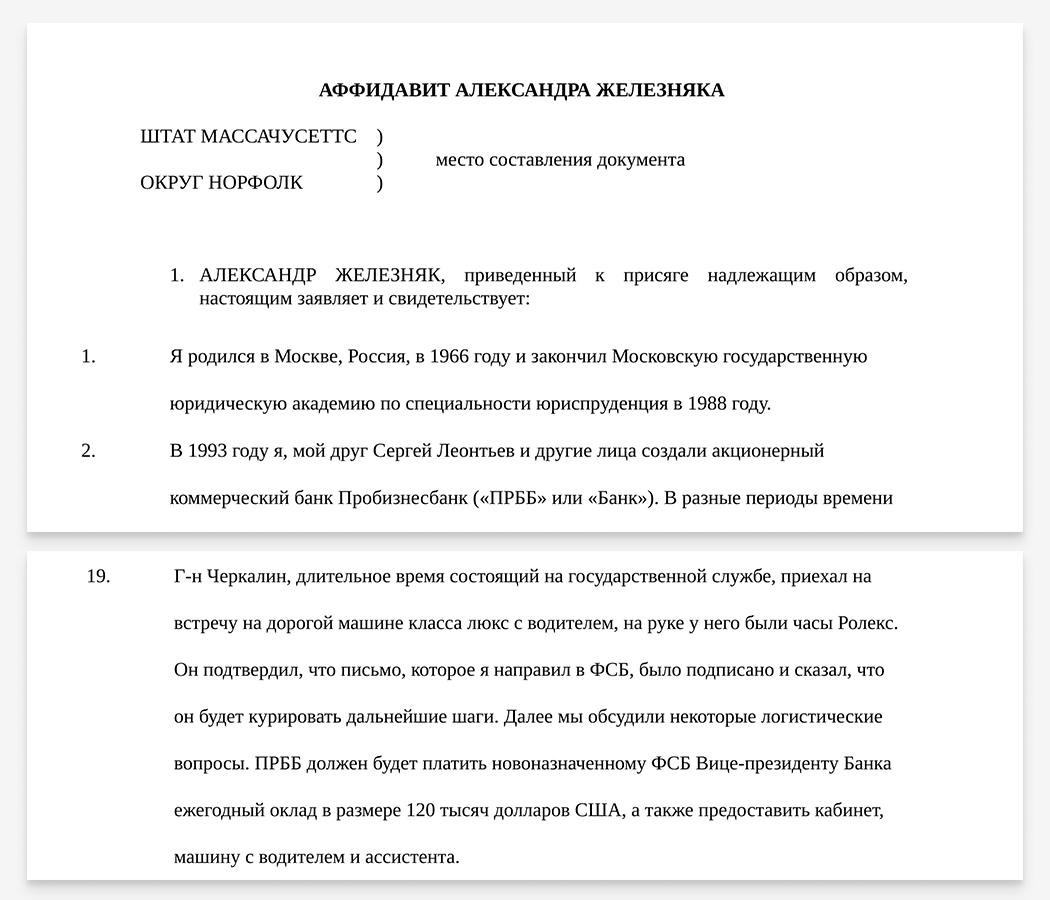 Обо всем этом Железняк, находясь в США, в 2019 году дал показания под присягой для представления в международных судах — мы ознакомились с этими документами. Заверенные нотариусом, они будут использованы в разбирательствах, которые совладельцы «Лайфа» ведут в Европе и США.