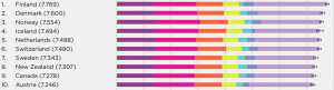 • Подробнее. Самыми счастливыми странами оказались Финляндия, Дания, Норвегия, Исландия, Нидерланды, Швейцария, Швеция, Новая Зеландия, Канада и Австрия. Недалеко от лидеров — Великобритания (15-е место), Германия (17-е) и США (19-е).