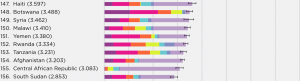 • В десятку самых несчастливых стран мира вошли Гаити, Ботсвана, Сирия, Малави, Йемен, Руанда, Танзания, Афганистан, Центральноафриканская республика и Южный Судан. По мере снижения индекса счастья разница между его значениями становилась менее существенной, отмечают эксперты.