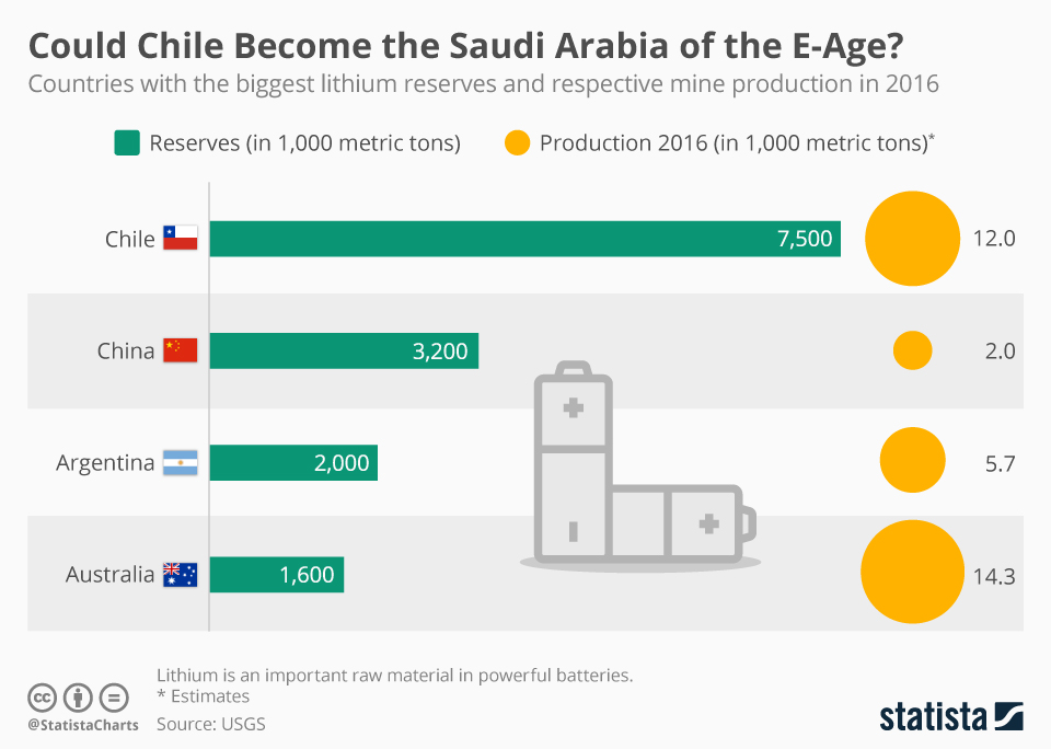 В эпоху электромобилей литий, необходимый для современных батарей, может стать новой нефтью. Для производства одного автомобильного аккумулятора нужно 10 кг металла — в 300 с лишним раз больше, чем для батареи ноутбука. С начала 2015 года мировые цены на литий выросли втрое.