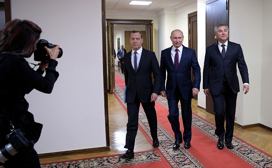 Дмитрий Медведев и Владимир Путин в Госдуме. Фото Кремля