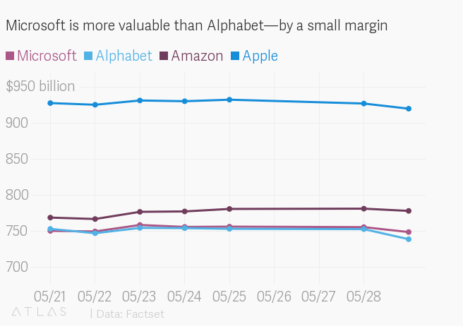 - Alphabet впервые обошла Microsoft по капитализации в 2012 году, и с того момента компании уже не один раз меняли свои позиции. В последний раз Microsoft уступил конкуренту в 2015 году.