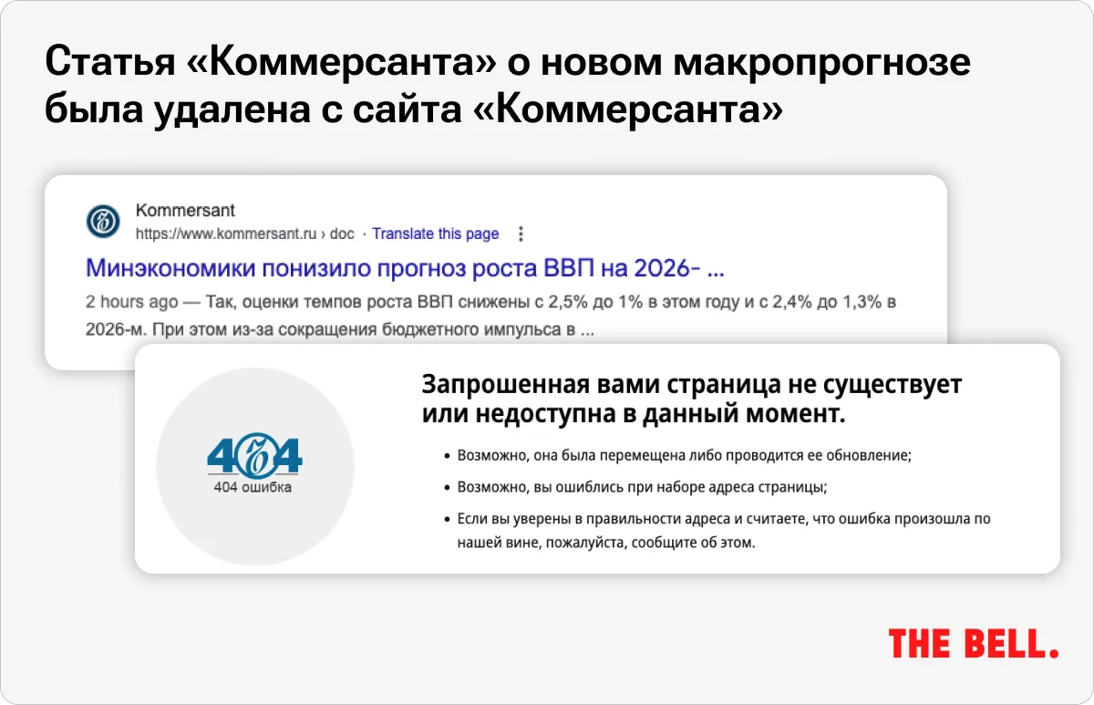 UPD. В 16:35 по Москве удаленная утром статья снова появилась на сайте «Коммерсанта». К этому времени Минэкономики уже представило обновленный прогноз.