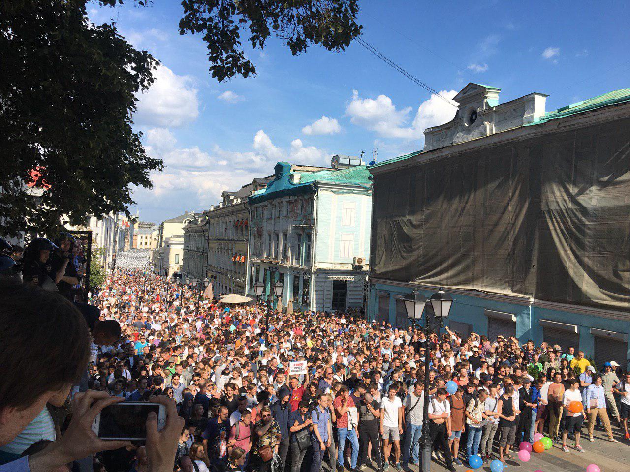 Митинг за свободные выборы в Москве 27 июля начался с массовых задержаний в районе Тверской, а закончился массовыми задержаниями на Трубной. Это была крупнейшей несогласованной акцией последних лет — по крайней мере по числу задержанных, которое перевалило за тысячу. Протестующие не смогли прорваться к первоначальной цели — зданию мэрии, зато им удалось пройти маршем по всему центру Москвы и перекрыть Охотный Ряд и Садовое кольцо. The Bell следил за развитием событий в онлайн-режиме.