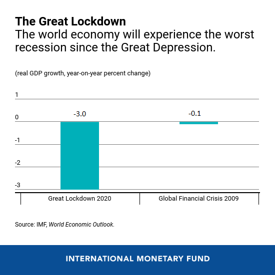 Экономисты МВФ называют этот кризис Great Lockdown (большой карантин) и не случайно сравнивают его с Великой депрессией — в 2020 году впервые с 30-х годов прошлого века ожидается падение одновременно и развитых, и развивающихся экономик.