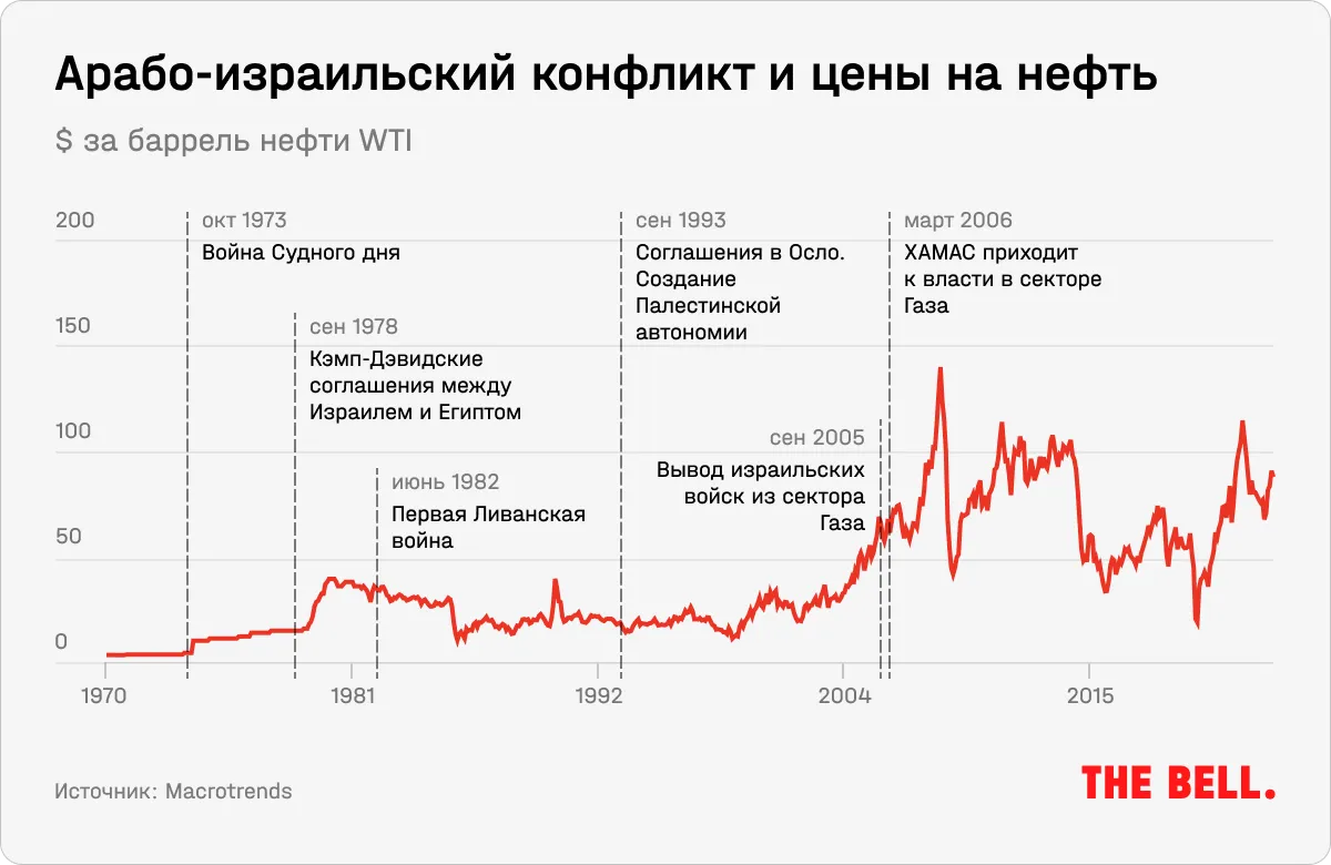 - Но сейчас повторение такого кризиса маловероятно. Все последние обострения на Ближнем Востоке долгосрочно на нефтяных ценах не сказывались. Мировой рынок нефти мог бы отреагировать на ближневосточный кризис заметным ростом цен, если бы в военный конфликт были вовлечены другие страны (в первую очередь Иран), что могло бы затруднить транспорт нефти из стран Ближнего Востока, или была бы реальной угроза нефтяного эмбарго ОПЕК, говорит президент Института энергетики и финансов Марсель Салихов. По всей видимости, рынок оценивает эту вероятность как относительно небольшую, говорил он The Bell еще в конце октября.