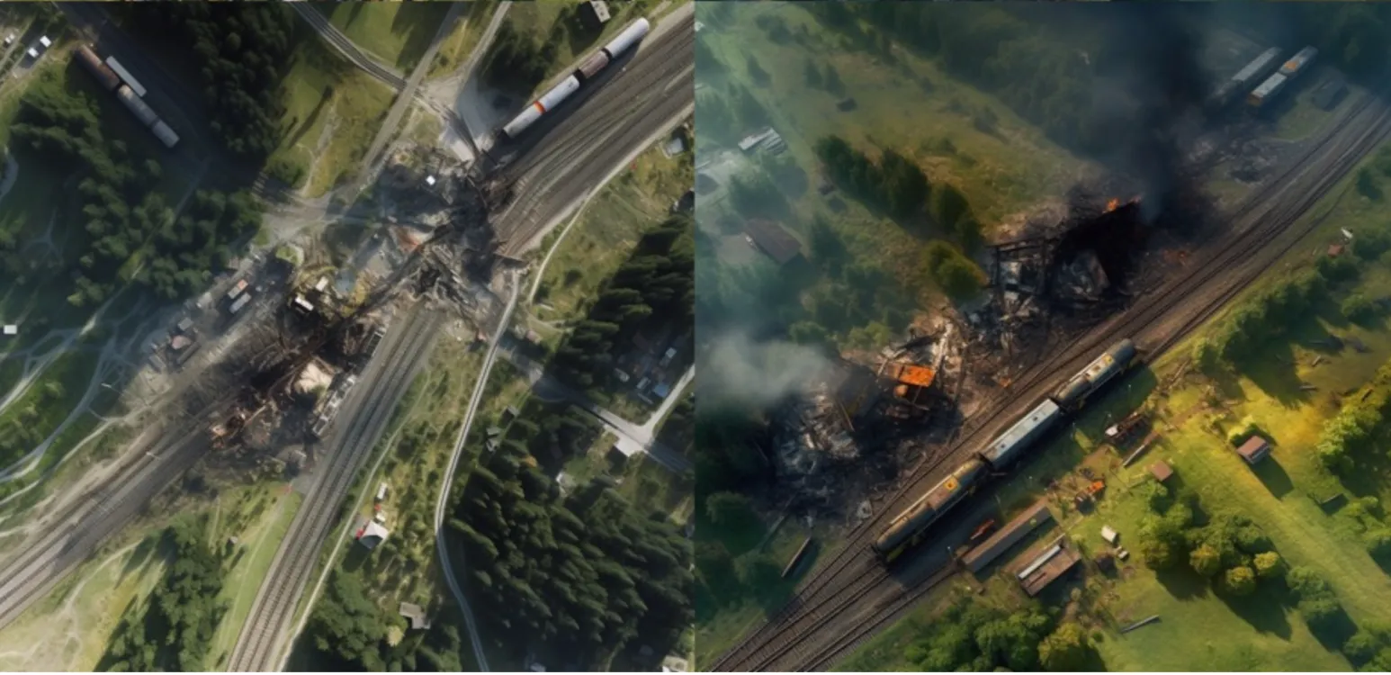 В западной журналистике в последние годы появился термин «географическая фальсификация» — создание фейковых спутниковых изображений. Для этого, в частности, используется искусственный интеллект Midjourney. Эксперты на лекциях GIJC-2023 показали примеры снимков, созданных AI по запросу всего из нескольких описательных слов. Тем не менее снимки выглядят вполне правдоподобно. Как отличать сгенерированный нейросетью контент от настоящего, мы рассказывали тут.