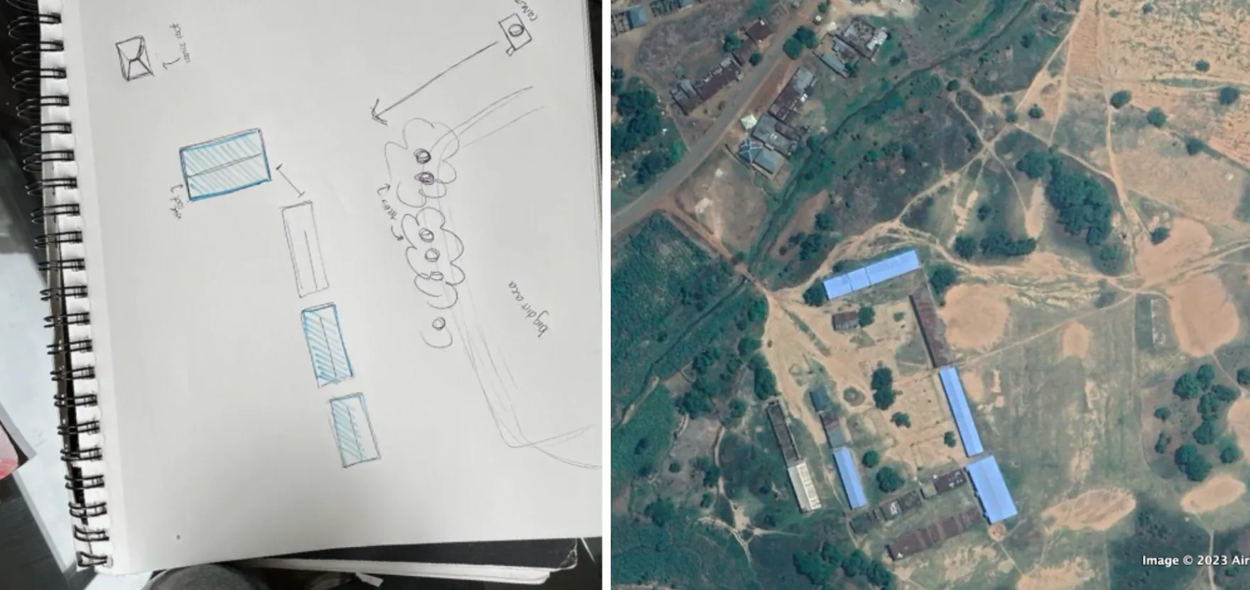 — искать нечто подобное на спутниковых снимках предполагаемой зоны — это можно делать с помощью Google Maps или Google Earth Pro;
