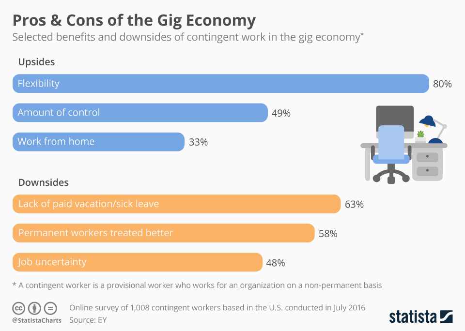 Что больше всего нравится и не нравится сотрудникам компаний gig economy. Источник: Statista