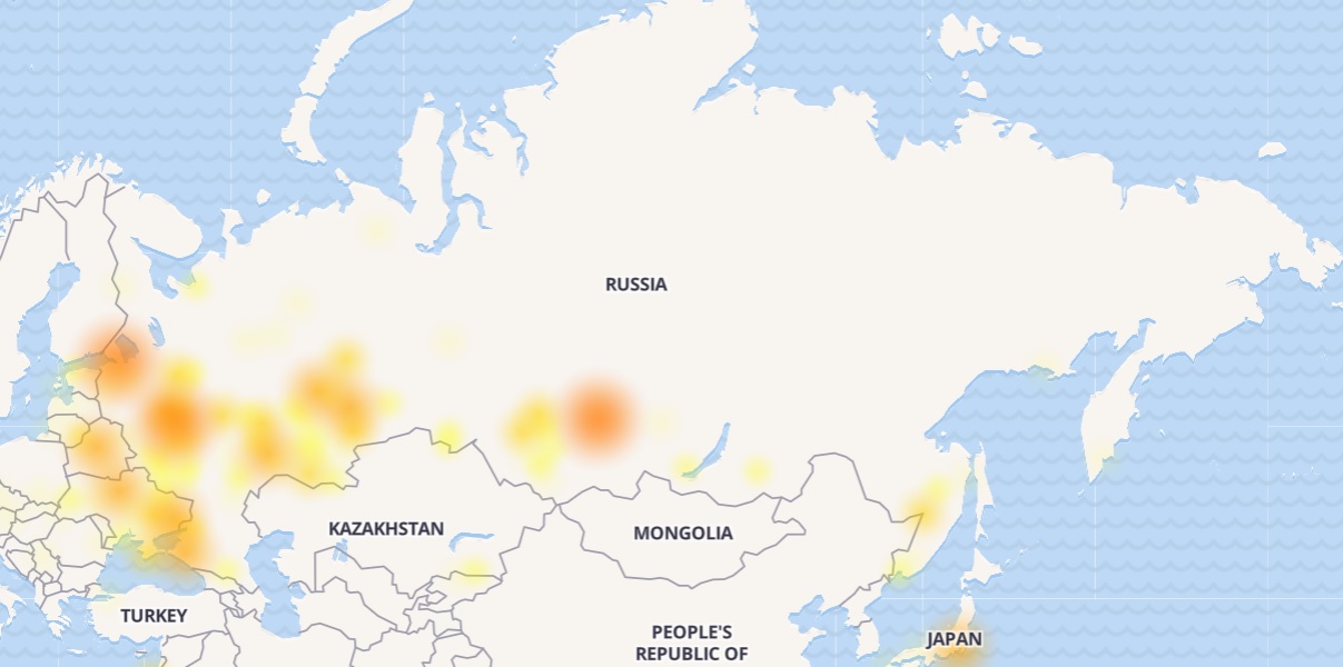 - По данным мониторингового сайта Downdetector.com, проблемы с Google возникли в ряде крупных городов, в том числе в Москве, Санкт-Петербурге, Нижнем Новгороде, Казани, Перми, Екатеринбурге, Новосибирске, Красноярске, Хабаровске.
