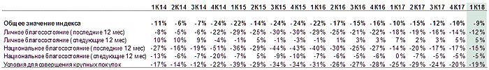 - А в следующий раз раскрыл его значение только в 2019 году: оказалось, что во втором квартале 2019 года по отношению к первому кварталу того же года «индекс настроений потребителей снова подрос, с минус 22% до минус 21%» .