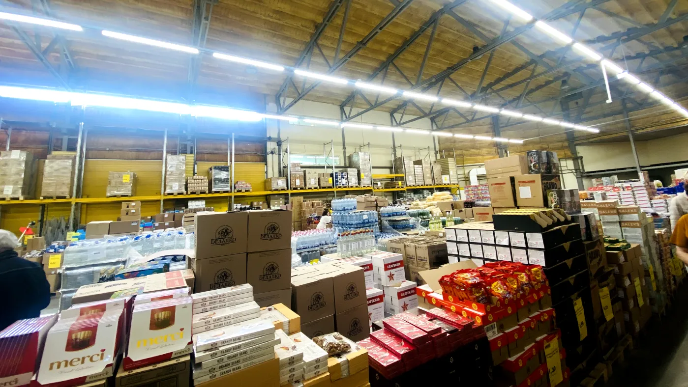Mere в Европе ничем не отличаются от российских «Светофоров». В магазинах, в которых побывал корреспондент The Bell в Латвии, вдоль голых стен в несколько ярусов стоят паллеты с товарами. Открытый в 2021 году Mere на улице Спилвас, на окраине района Ильгюциемс в Риге, — фактически склад с кассовой зоной. Из всех удобств — только большие тележки. Вместо ценников к коробкам скотчем приклеены листы А4 с распечатанной на них ценой и названием товара.