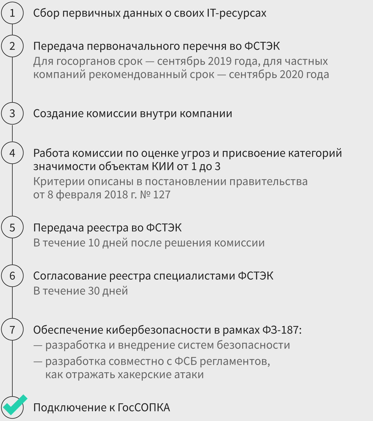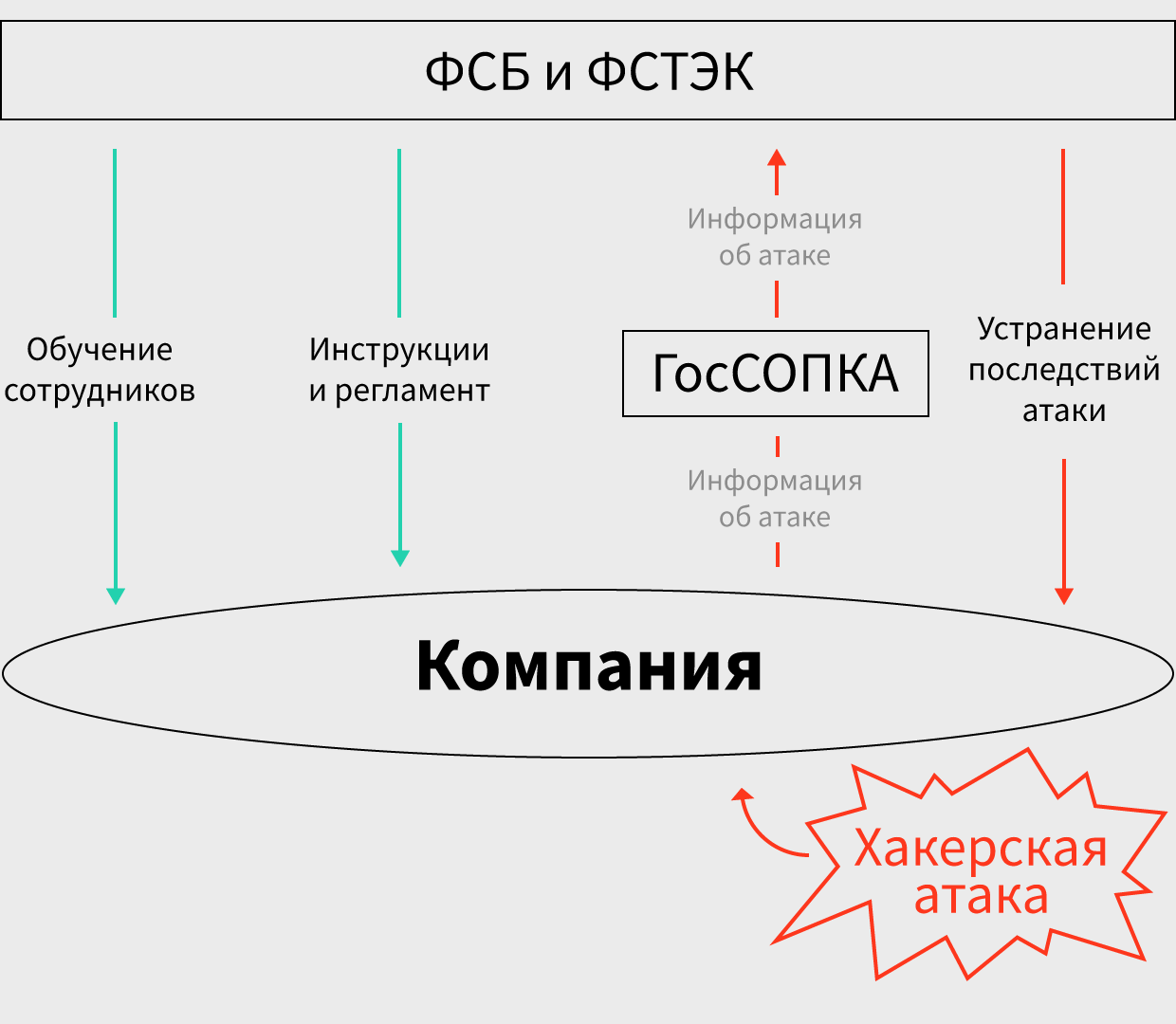 Компания подключается к системе ГосСОПКА, которую контролирует ФСБ России. Она следит за устранением кибератак и их последствиями.