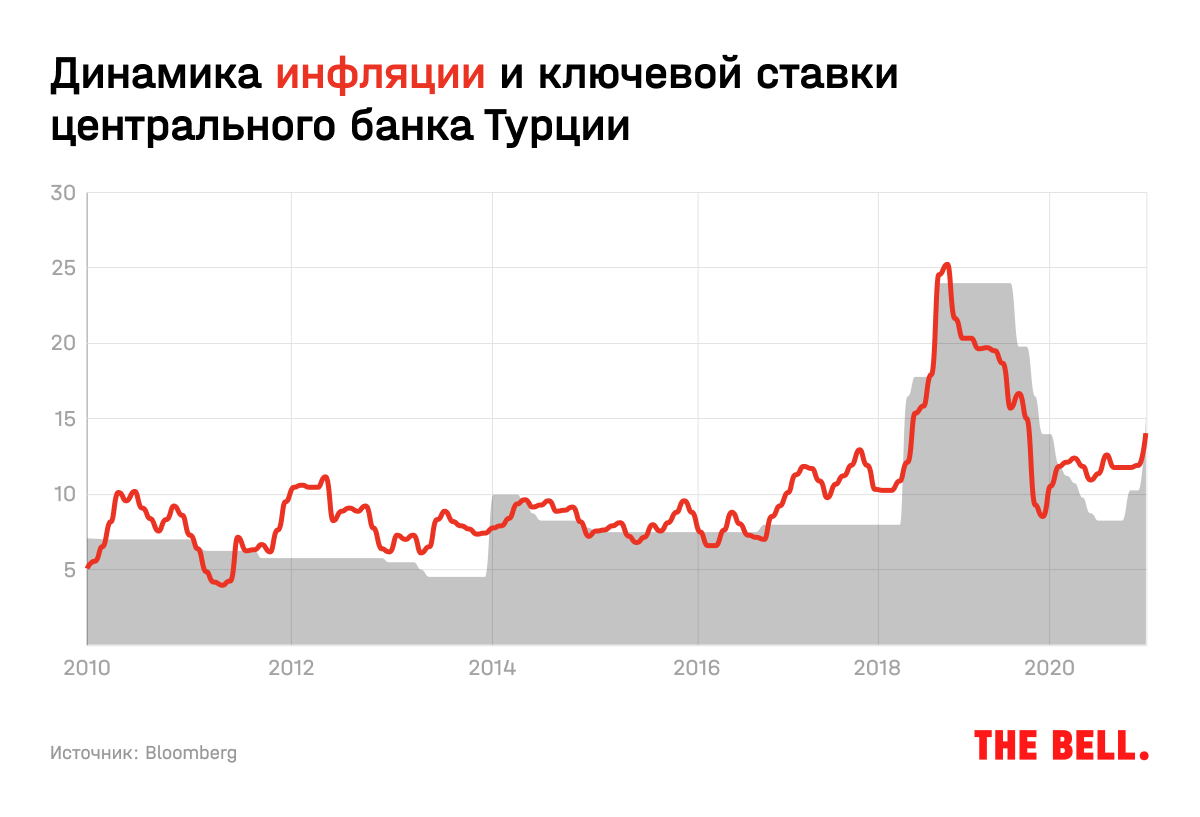 Такие изменения были в очень значительной степени вызваны политикой турецкого лидера Реджепа Тайипа Эрдогана, популярность которого во многом держалась на экономическом росте, который он старался поддерживать любой ценой. С 2014 года по настоящее время проблемы лишь усугубились — всем известны весьма своеобразные взгляды турецкого лидера на монетарную политику (Эрдоган часто говорит, что высокие процентные ставки способствуют увеличению инфляции, хотя все совсем наоборот). В результате лира на протяжении уже многих лет является одной из самых нестабильных валют, в банковской системе страны накопились проблемы, а популярность Турции среди иностранных инвесторов сильно снизилась. На этом фоне стоимость рабочей силы, которая была одним из преимуществ в 2000-х годах, стала скорее тормозом экономического развития — зарплаты продолжили расти опережающими инфляцию темпами при том, что производительность труда уже не росла и даже снижалась.
