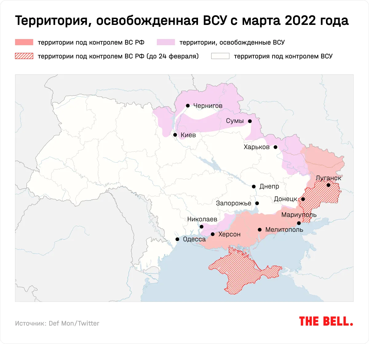 Российская армия, освободив Херсон, упростила себе задачу обороны остальных территорий, укрывшись на левом берегу за труднопреодолимой водной преградой Днепра и в очередной раз сократив территорию, которую надо оборонять. Но на этом выгоды вынужденного отступления заканчиваются. С учетом освобожденного херсонского правобережья Россия уже утратила почти половину украинских территорий, закхваченных после 24 февраля.