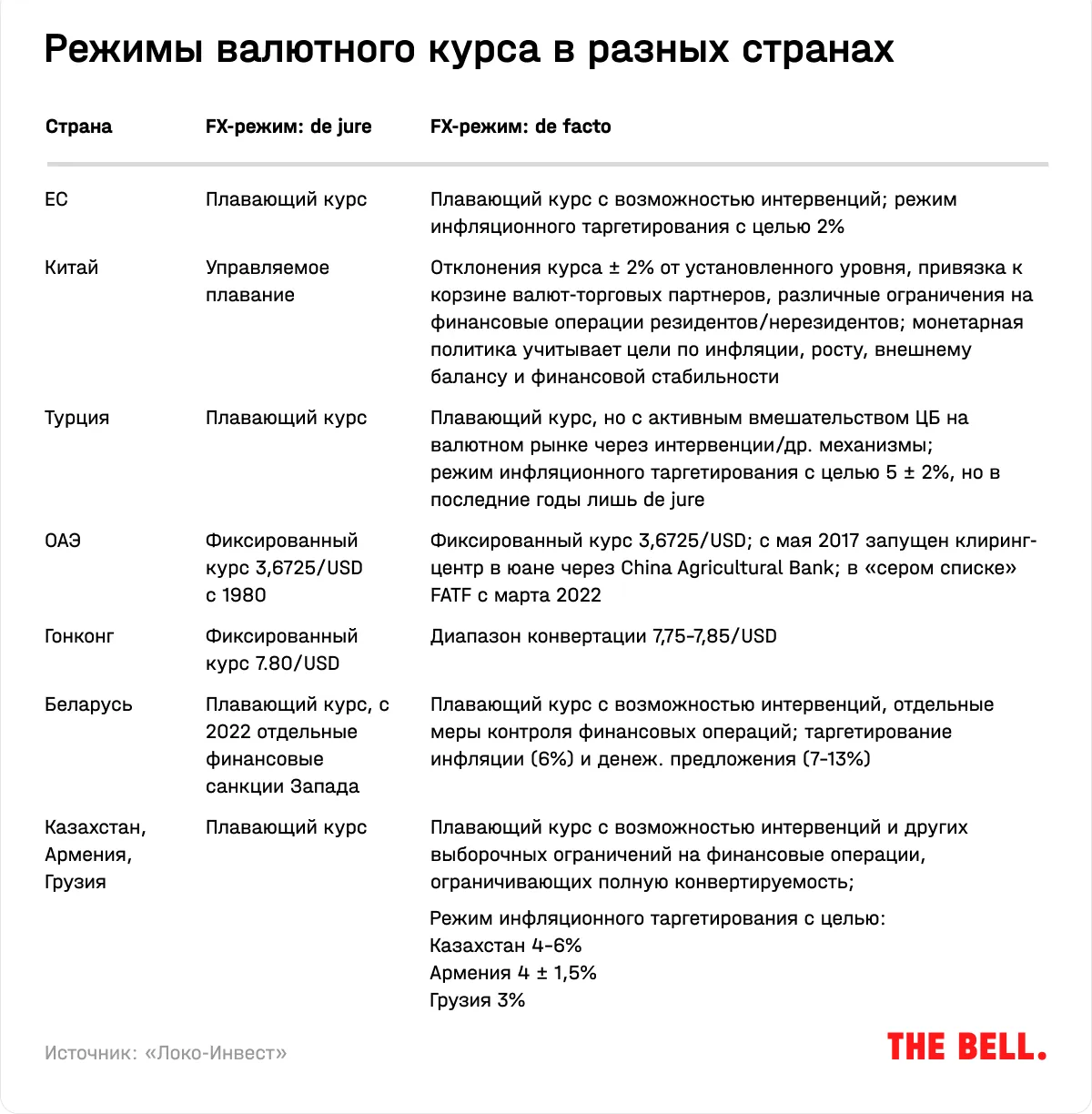 Аналитики также сделали краткую классификацию режимов валютного курса и монетарной политики по методологии МВФ.