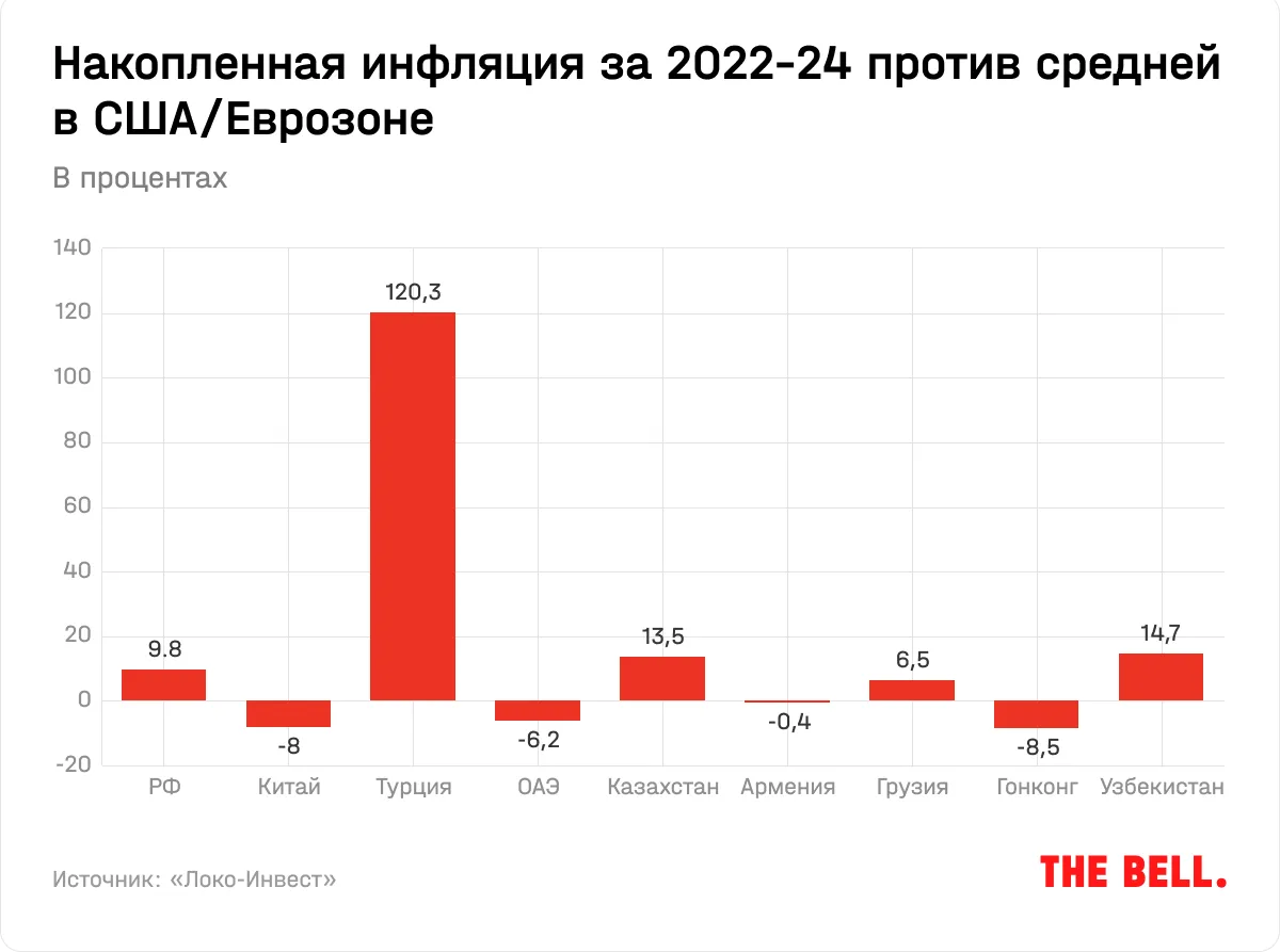 Странам с высокой инфляцией и макроэкономическими рисками (дефицитом бюджета и текущего счета) для поддержания стабильности нацвалют может потребоваться более высокая реальная процентная ставка. Это повышает привлекательность валюты в рамках операций carry-trade, когда инвесторы берут в долг под низкий процент в одной стране и вкладываются под более высокий в другой, и снижает риск значительного ослабления номинального курса.