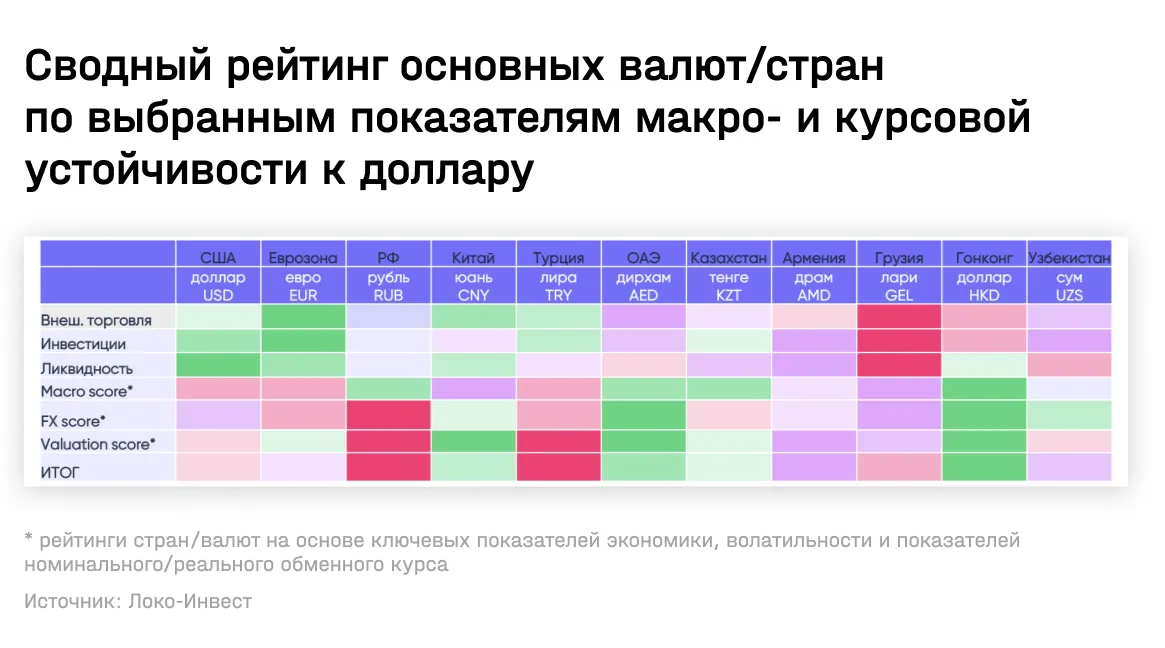 Получилось, что больше запас прочности и меньше уязвимость у юаня, гонконгского доллара, дирхама, лари и драма.