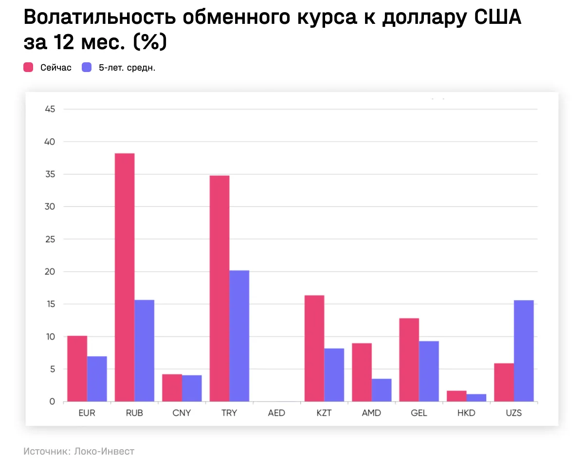 Что в итоге: наибольшей волатильностью обладает турецкая лира, наименьшей — дирхам.