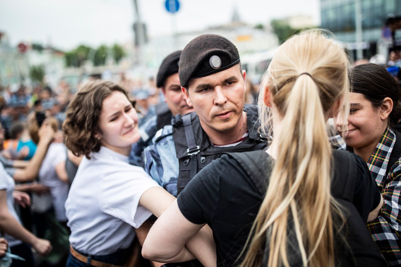 Самые жесткие задержания начались на подступах к Петровке — по сообщениям очевидцев, переулки вокруг улицы были перекрыты, а против протестующих выступили силы Росгвардии. Здесь задерживали уже всех без разбора.