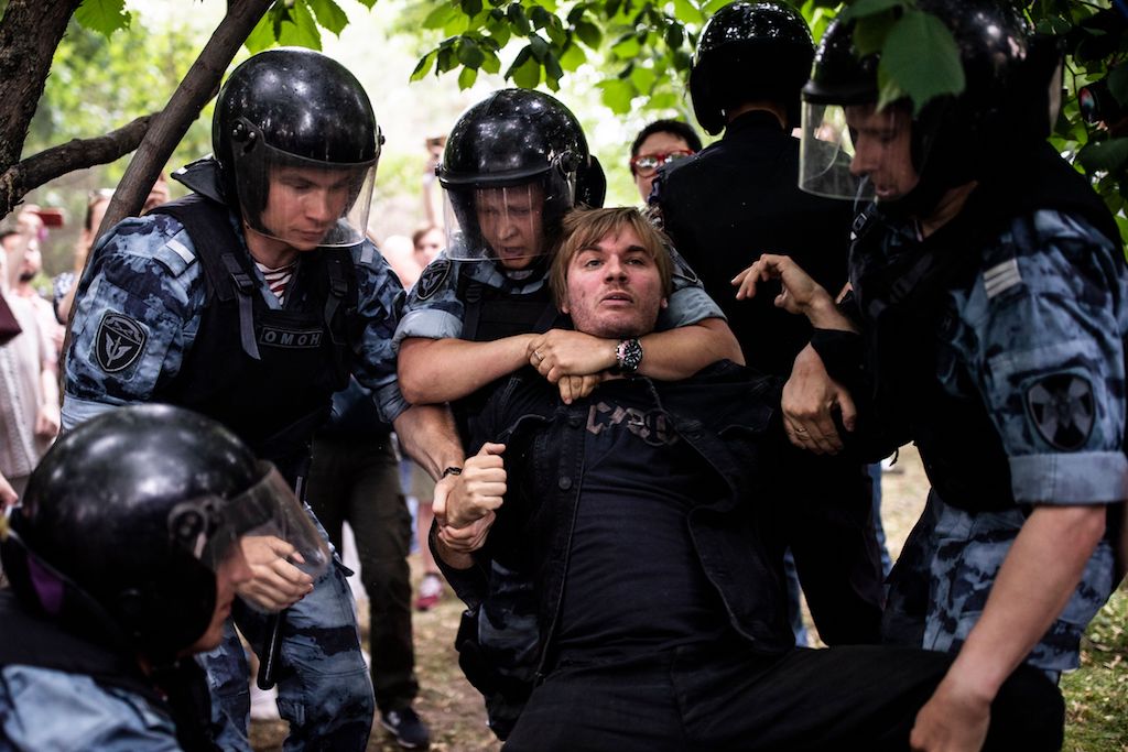 Первыми в поле зрения полиции попадали люди в футболках «Я/Мы Иван Голунов». Для того чтобы оказаться в автозаке, необязательно было вести себя агрессивно, скандировать лозунги или мешать проезду машин.
