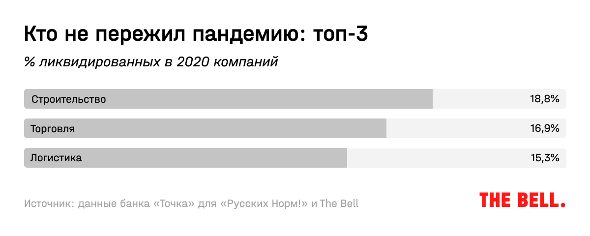 — По моим ощущениям, 10–15%. Но во-первых, у нас немного сдвинутая выборка: «Точка» исторически мало работала с розничным бизнесом, который пострадал сильнее всего. А во-вторых, интересно не что будет с юрлицами, а что будет с предпринимателями. Закроется юрлицо — жалко. Но многие найдут силы подняться и бежать дальше.
