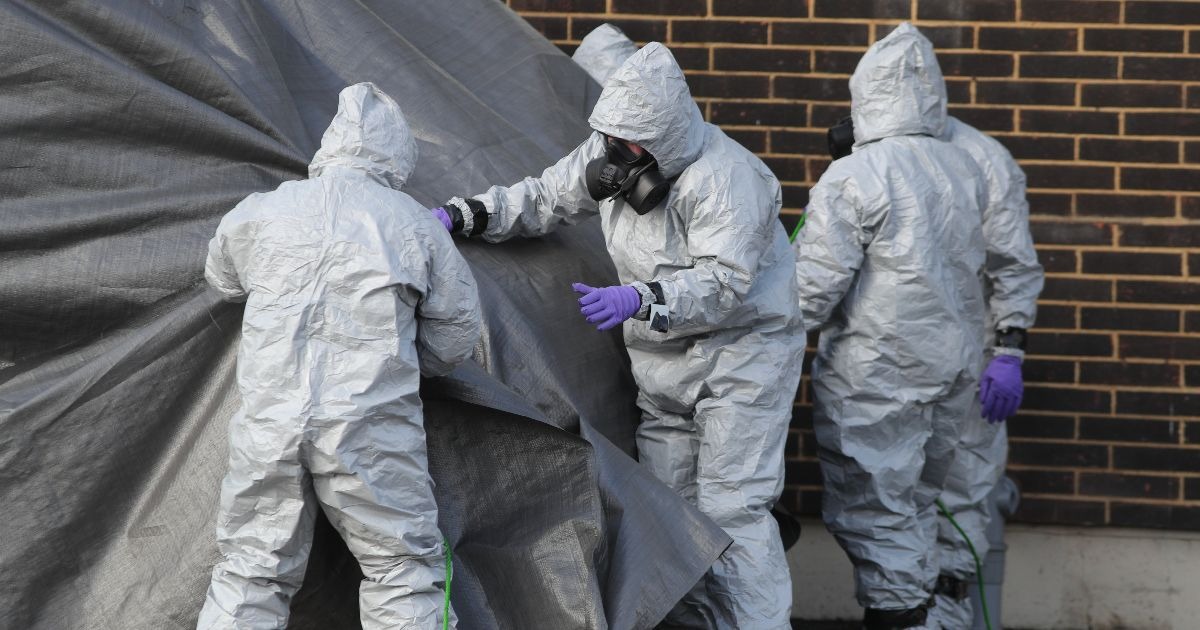 Полицейские в костюмах химзащиты на месте отравления в Солсбери. Фото: PA Images/ТАСС