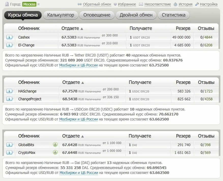 Сам процесс обычно выглядит как-то так: человек находит в нужном городе наиболее крупный и залайканный обменник через BestChange (еще и желательно с приличным курсом), дальше общение уже протекает, как правило, за пределами платформы. Потом покупатель блокирует с собеседником на полчаса курс на обмен нужной суммы, ему скидывают секретные координаты нужного подвала (ну, или красивого офиса в Москва-сити — тут уж как повезет). По приезде человек в итоге оказывается в комнатке с оператором и машинкой для счета денег — ну вот там все и происходит.